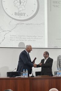 В завершение мероприятия участники имели возможность задать автору романа Ферди Айдемиру многочисленные вопросы о его творчестве и творческих планах. С заключительным словом выступил директор института Джамбулат Эдалгиреевич Оздоев. «Уважаемые коллеги! – обратился Джамбулат Эдалгиреевич. – Вы сегодня прекрасно поработали, познакомились с замечательным автором. Я хотел бы искренне поблагодарить Ферди и вручить ему благодарственное письмо за значительный литературный вклад, укрепление межнациональных связей и активное участие в презентации романа «Шестнадцатый час», а также преподнести небольшой подарок от института».