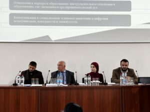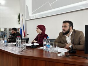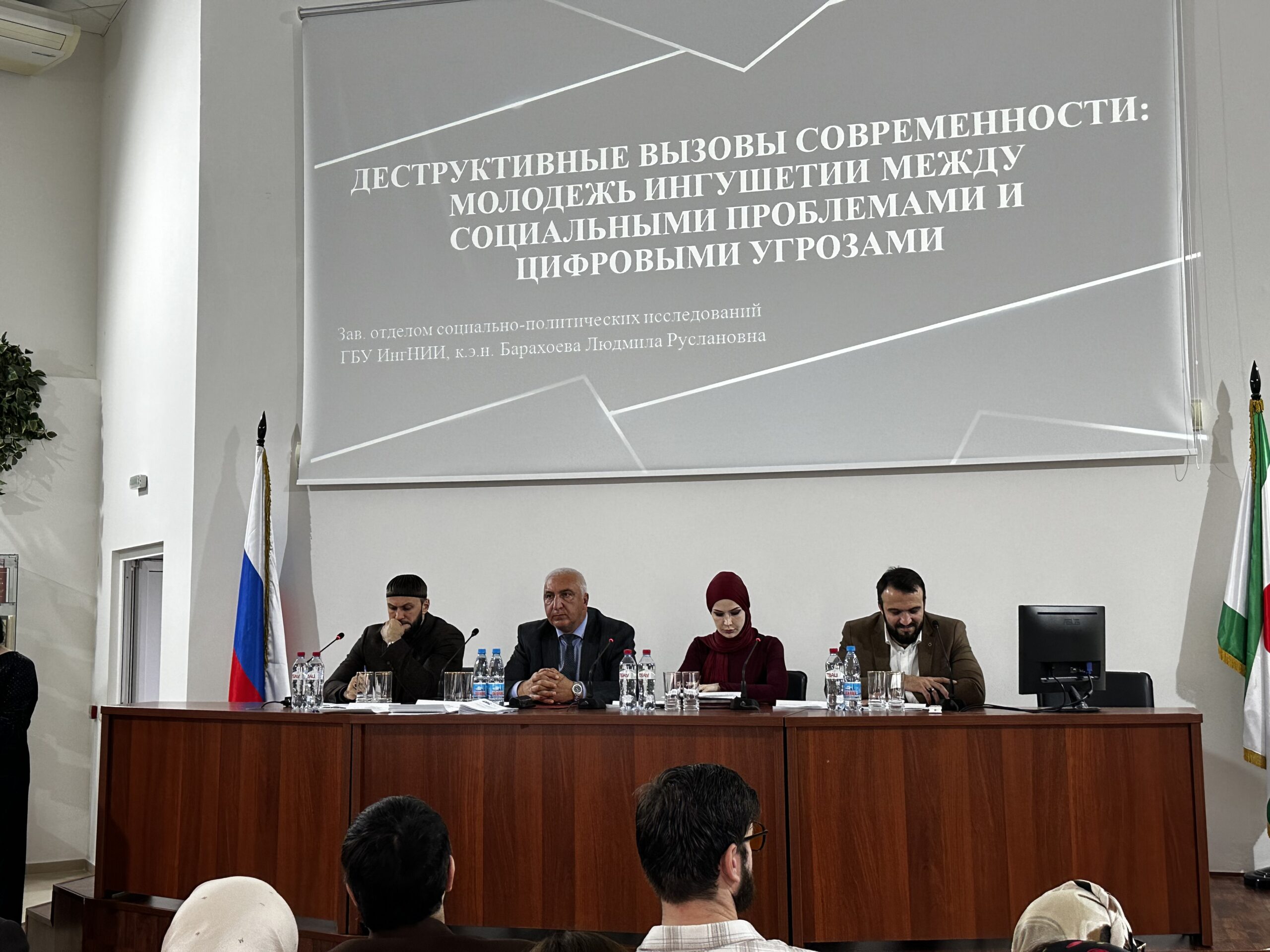 1. Барахоева Людмила Руслановна, заведующая отделом социально-политических исследований ИнгНИИ, к. э. н., выступила с докладом: «Деструктивные вызовы современности: молодежь Ингушетии между социальными проблемами и цифровыми угрозами». В своем выступлении Людмила Руслановна представила результаты многолетних исследований, посвященных анализу уязвимости молодежи Ингушетии перед деструктивными влияниями. Было отмечено, что молодежь республики составляет значительную и постоянно растущую часть населения — 39,2%, что создает особую социальную значимость этой группы. Психологический портрет современной молодежи характеризуется прагматизмом, ориентацией на стабильность, но одновременно — повышенной тревожностью и отсроченным взрослением. Ключевой проблемой, подрывающей социальное самочувствие молодежи, является хроническая безработица, а также низкий уровень заработной платы — в 2,1 раза ниже среднероссийского показателя. Особую озабоченность вызывает информационное пространство: отмечается рост экстремистского контента в интернете, при этом каждый четвертый старшеклассник сталкивается с деструктивными материалами. Молодежь демонстрирует комбинированное доверие к цифровым источникам, федеральным и региональным СМИ, а также религиозным наставникам. В качестве решения предложен комплексный подход, включающий совершенствование образовательных программ с интеграцией антитеррористического контента; развитие медиаграмотности и критического мышления; создание молодежных центров и программ трудоустройства; использование доверенных каналов коммуникации для профилактической работы. Достижение эффективности в области профилактики требует интеграции двух направлений: реализации мероприятий по улучшению социально-экономического положения и проведения адресной информационной работы, адаптированной под возрастные особенности и систему ценностей современной молодёжи.
