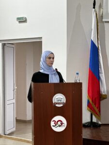 4. Барахоева Мадина Ибрагимовна, лаборант отдела социально-политических исследований, представила доклад Арсельговой Марины Адамовны, старшего научного сотрудника отдела социально-политических исследований ГБУ «ИнгНИИ»: «Запрос на стабильность: ключевые ориентиры современной молодежи как основа для профилактики деструктивных проявлений». В докладе на основе данных ВЦИОМ раскрываются ключевые ценности современной молодежи. Основной вывод — доминирование запроса на стабильность, где главными приоритетами выступают крепкая семья, здоровье и надежные социальные связи. Особое внимание уделяется специфике Ингушетии, где традиционные семейные устои усиливают общероссийские тенденции и служат буфером против социальной неопределенности. Молодежь демонстрирует прагматизм в жизненном планировании, сочетая личные интересы с рациональными стратегиями достижения успеха. Значимым трендом является кардинальное изменение миграционных настроений — большинство молодежи связывает свое будущее с Россией. Для Ингушетии это создает возможность построения эффективной политики, где традиционные ценности становятся основой для создания достойных условий жизни и реализации потенциала нового поколения.
