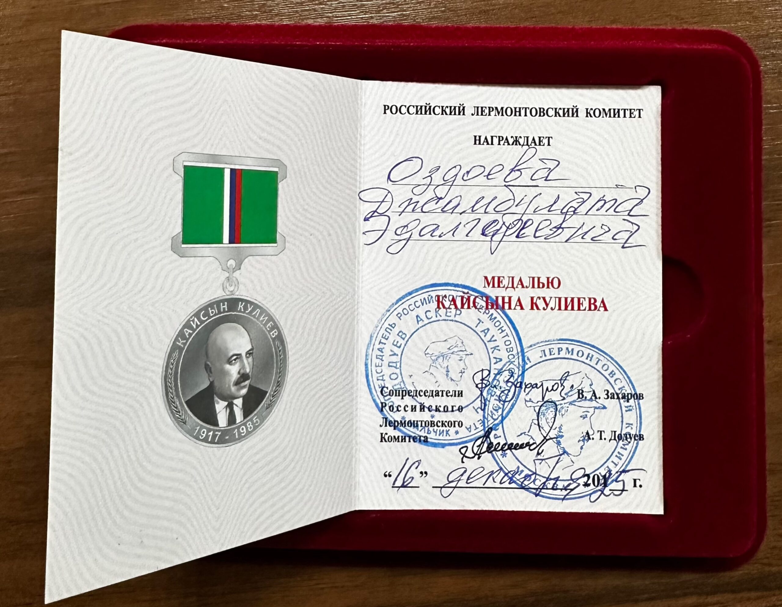 В завершение мероприятия поэт Аскар Додуев вручил директору института Джамбулату Оздоеву медаль Кайсына Кулиева от Российского Лермонтовского комитета. Гости выразили благодарность ГБУ «ИнгНИИ» за организацию семинара, отметив его важность для развития культурных связей между регионами.